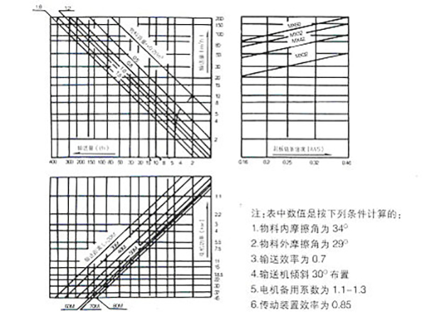 ×¢£º±íÖÐÊýʲµÃ°´ÏÂÁÐÌõ¼þ¼ÆËãµÄ£º 1 ÎïÁϵÄÄÚĦ²Á½ÇΪ304¶È 2 ÎïÁÏÍâµÄĦ²Á½ÇΪ29¶È 3 ÊäËÍЧÂÊΪ0.7 4 ÊäËÍ»úÇãб30¶È²¼Öà 5 µç»ú±¸ÓÃϵÊýΪ1.1-1.3 6 ´«¶¯×°ÖÃЧÂÊΪ0.85