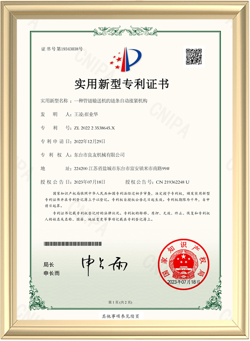 一种管链输送机的链条自动涨紧机构